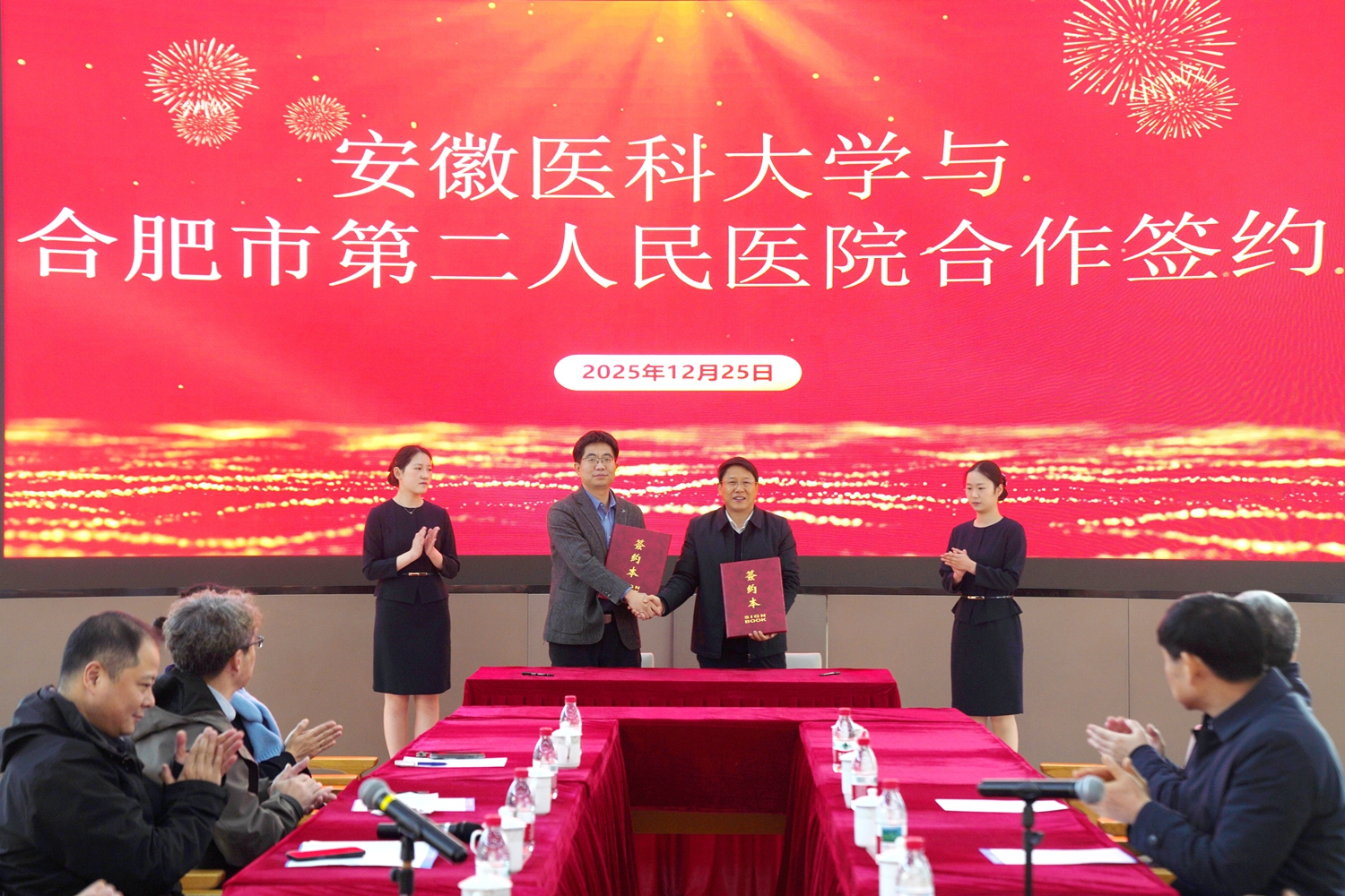 12月25日上午,安徽医科大学与合肥市第二人民医院合作签约仪式在合肥市第二人民医院举行。安徽医科大学党委常委、副校长邱志海与合肥市第二人民医院党委副书记、院长储建军代表双方签署合作协议...