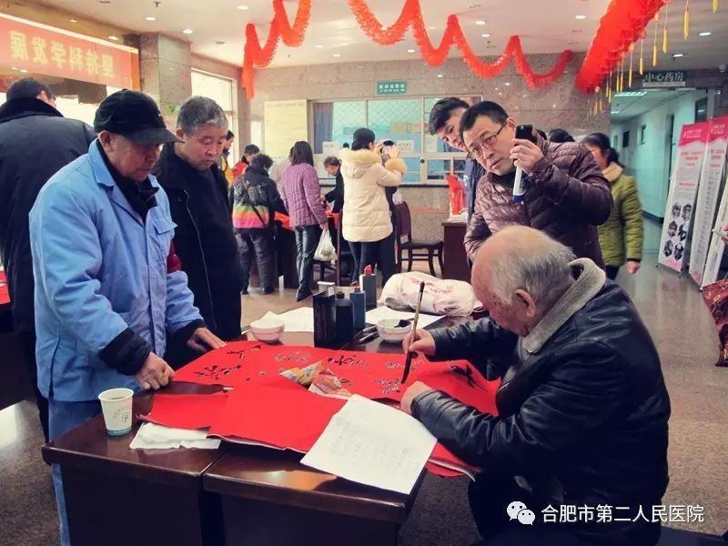 “寒梅雪中画,春风柳上归”、“花团锦簇天,万紫千红地”,1月22下午合肥市二院和平路院区2号楼1楼一片喜气洋洋,院工会和离退休支部组织的送春联活动正在火热进行。
